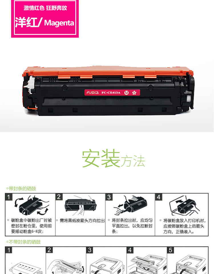 富士樱 (专业版) FC-CE411A 硒鼓 青色 适用:惠普彩色激光打印机 HP PRO 300/400/M351/M375NW/M475DN/451DN/451NW