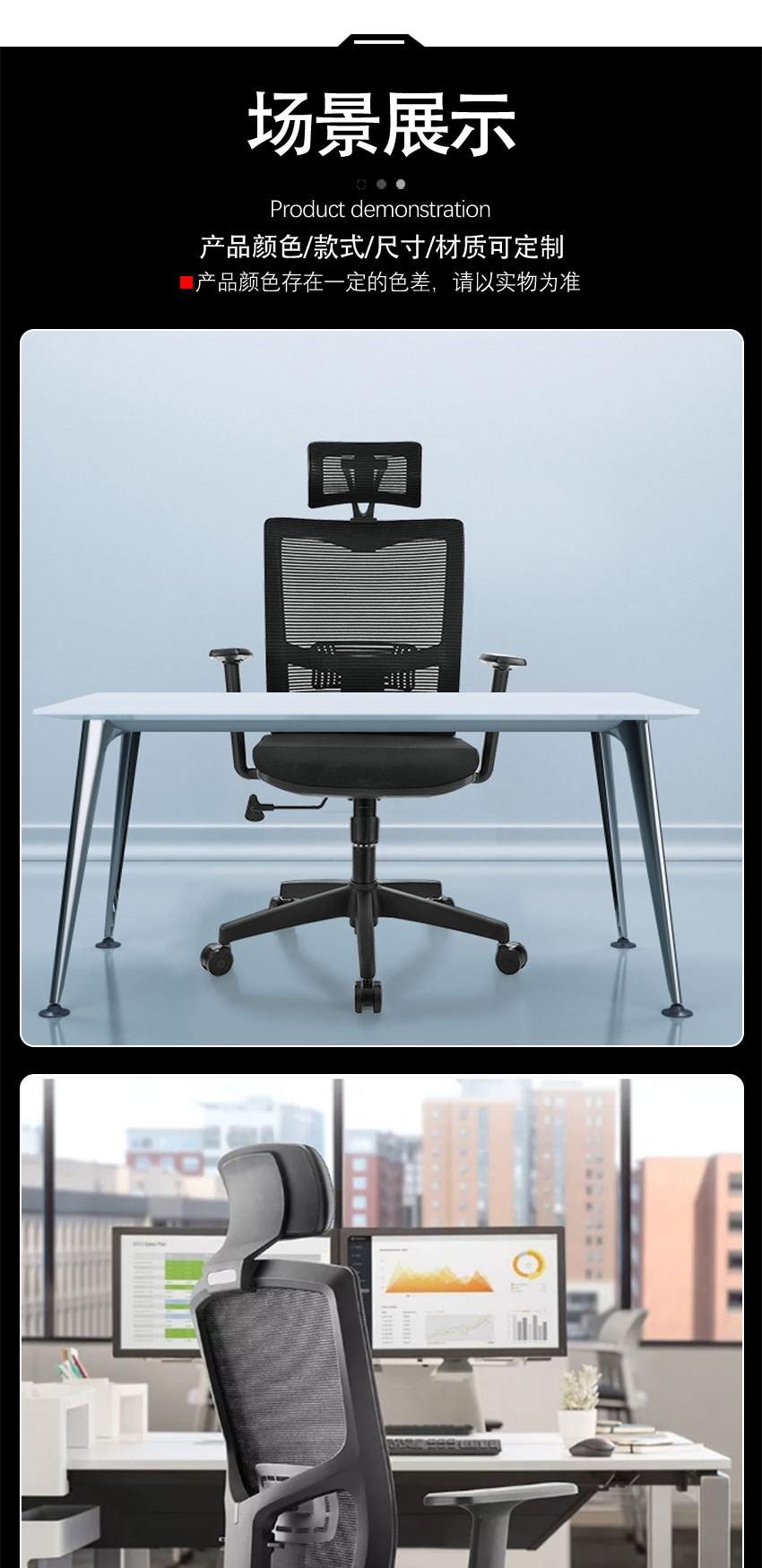 顺富美 黑色电脑椅办公椅 弓形电竞椅家用人体工学网布椅 职员椅靠背转椅老板椅学习椅 主播游戏网红小椅子