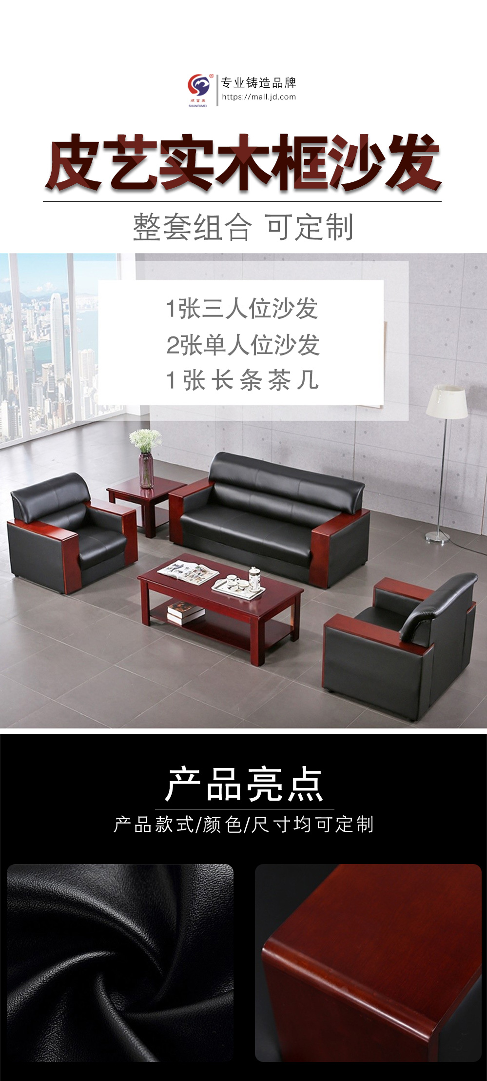 顺富美 SHUNFUMEI 商务办公沙发茶几组合 办公室会客接单商务坐席沙发3+1+1+1.2米茶几