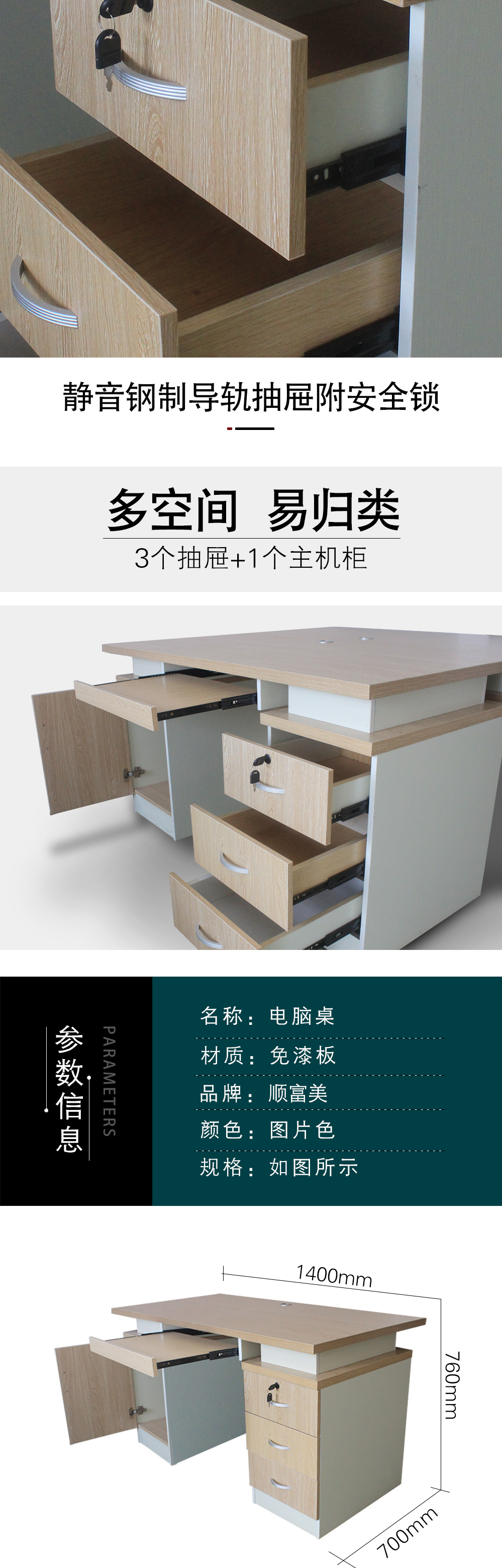 顺富美 1.4米职员办公桌 多抽屉单位台式员工电脑桌现代简约家用商业办公家具单人书桌 实木卧室写字台小桌子