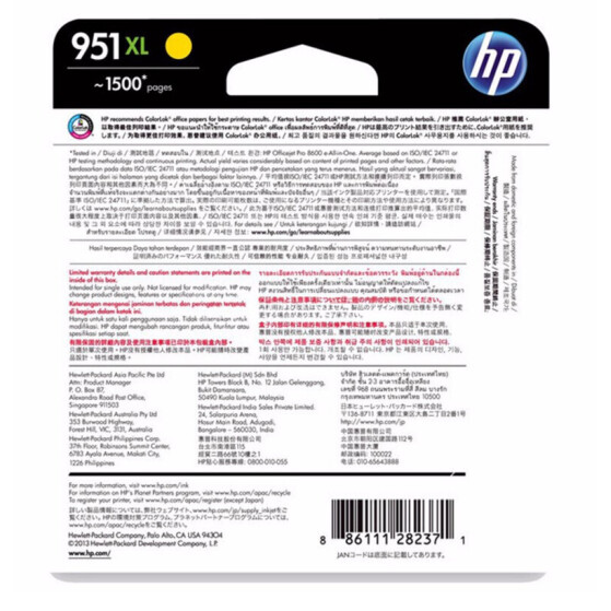 惠普(HP) CN048AA 951XL 大容量黄色墨盒(适用 8600plus 8100)